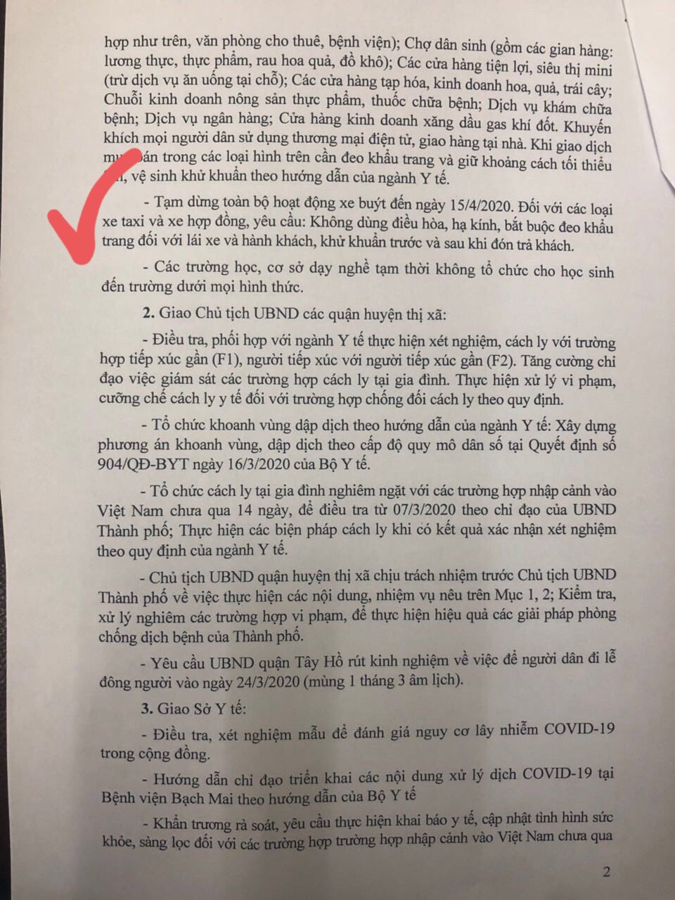 Mới đây, vào ngày 27/3/2020 đã có Công văn hỏa tốc gửi xuống cho các cấp lãnh đạo ban Sở ngành, Chủ tịch UBND quận, huyện, xã và cà thủ trưởng cơ quan liên ngành. Trong công văn, Thủ tướng Chính phủ yêu cầu việc tthực hiện quyết liệt trong đợt cao điểm nhằm chống dịch Covid-19. Các ban lãnh đạo phải theo dõi sát sao, kiểm soát các khu vực trong địa bàn, tuyên truyền người dân phòng chống dịch Covid.