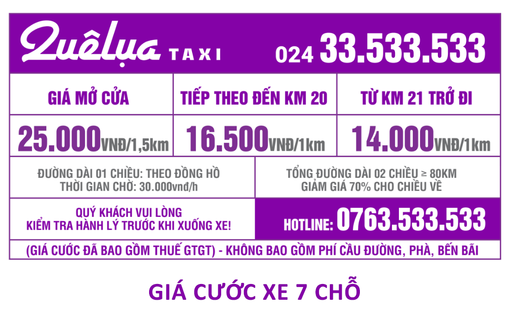 Bảng giá chi tiết xe 07 chỗ Taxi Quê Lụa